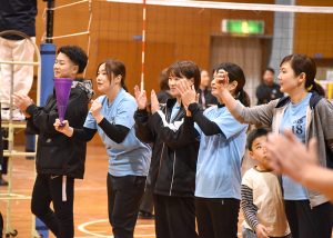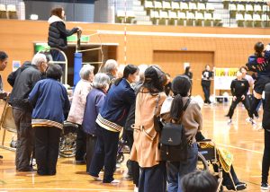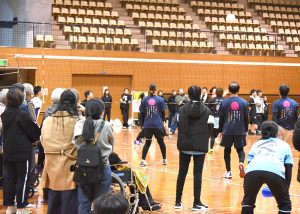 さらに今年は、健康会の利用者さん12名にもご来場いただき、職員と利用者さんが一緒に声援を送り、楽しむ姿が見られました。選手たちは全力でプレーし、観客も一体となって応援するなど、会場は熱気と笑顔にあふれ、決勝戦では点が決まる度に歓声が上がり、喜びを分かち合う光景が印象的でした。